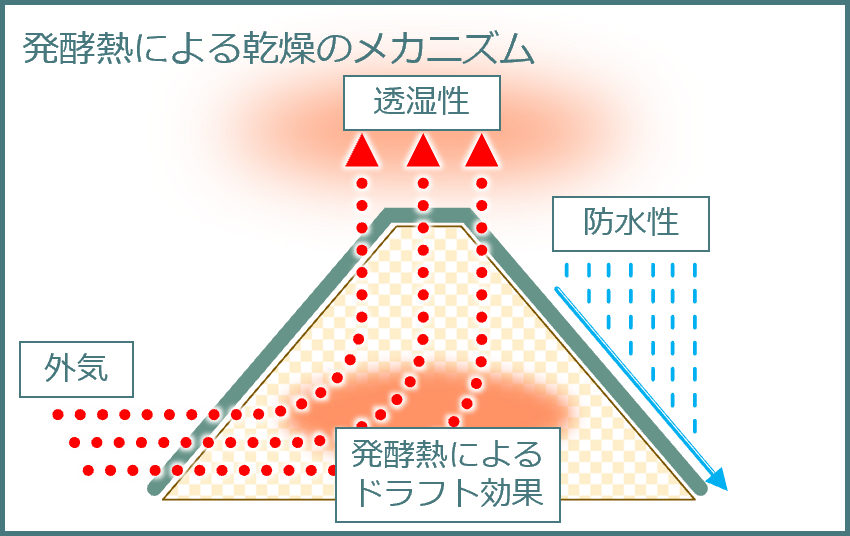 • 透湿防水シートによる発酵熱乾燥